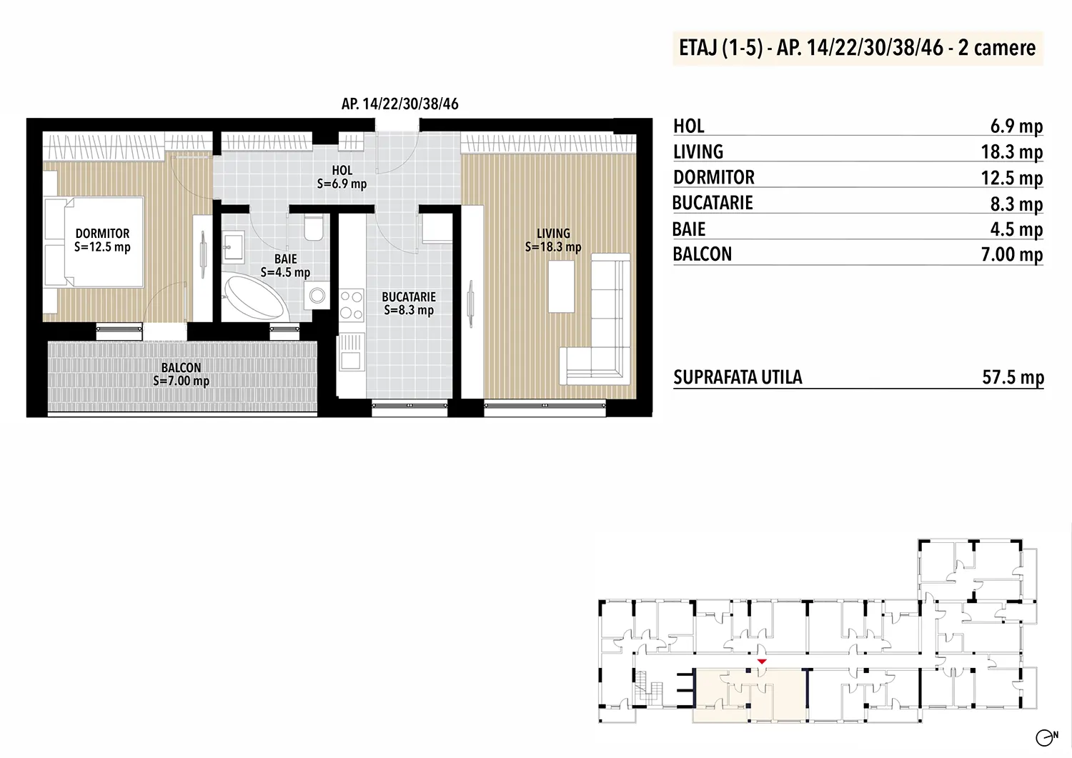 ** suprafele sunt calculate conform proiectului, pot exista mici diferențe față de suprafețele măsurate la recepție