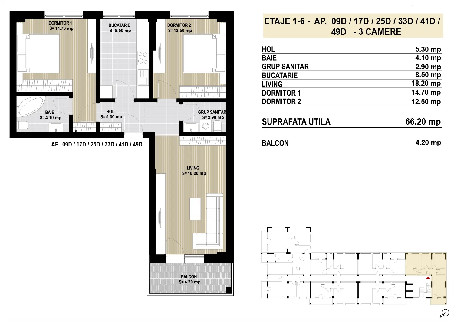 ** suprafele sunt calculate conform proiectului, pot exista mici diferențe față de suprafețele măsurate la recepție